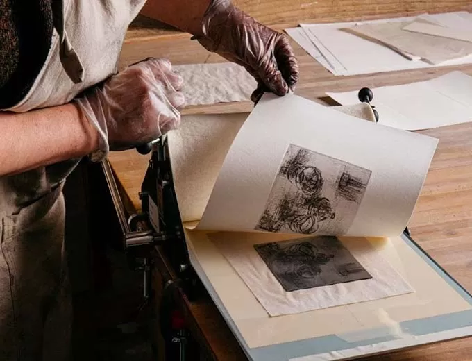 inclui diversas técnicas, como a água-forte, buril e ponta-seca, que envolvem a gravação ou corrosão de uma imagem em uma placa de metal.