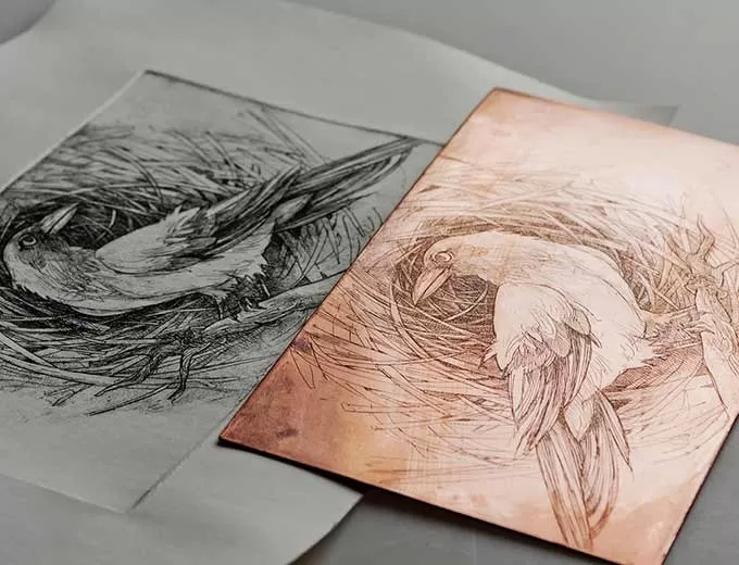 É uma técnica de gravura em que a imagem é esculpida em uma placa de metal usando uma solução ácida.