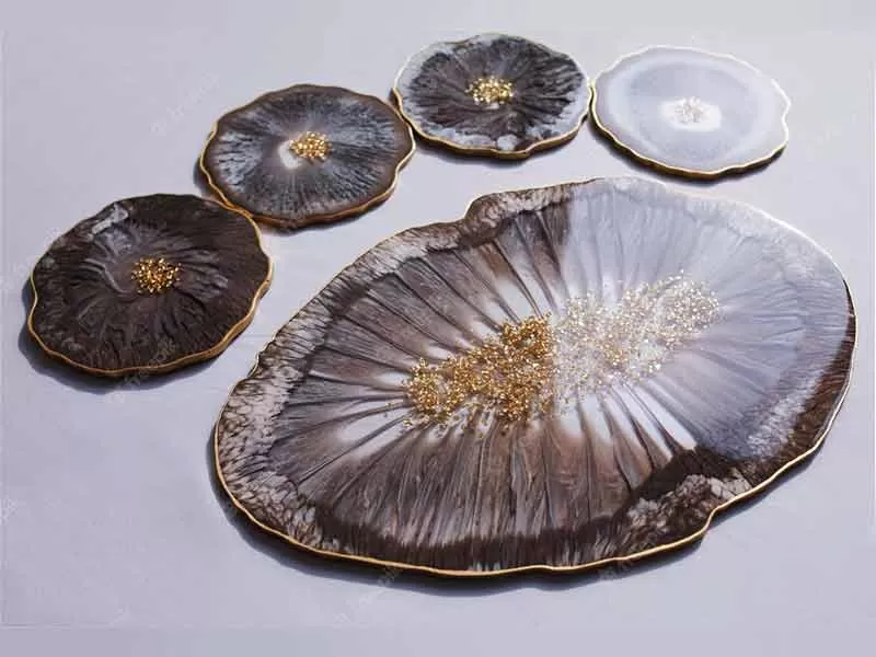 A resina epóxi é uma resina termoendurecível que é frequentemente usada em trabalhos artesanais. Ela é conhecida por sua resistência à água, aos produtos químicos e aos impactos. A resina epóxi também é fácil de usar e pode ser moldada em várias formas, tornando-a ideal para a criação de joias, objetos de arte e mesas. Ela seca rapidamente e é uma opção durável para a criação de peças transparentes ou coloridas.