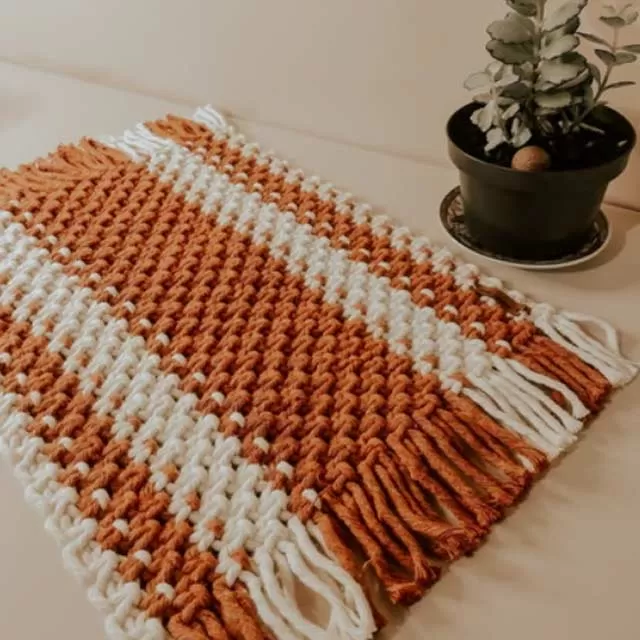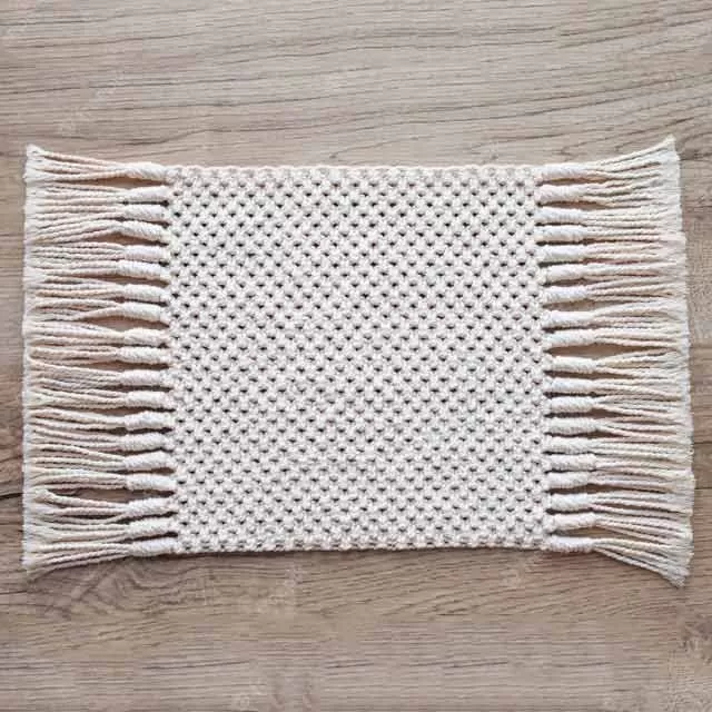Feitos de cordão de macramê trançado em um padrão específico, esses tapetes são duráveis e muito bonitos. Podem ser usados em diversos ambientes, como banheiro, salas de estar, quartos, escritórios e áreas externas, acrescentando um toque pessoal, artesanal e acolhedor à decoração.